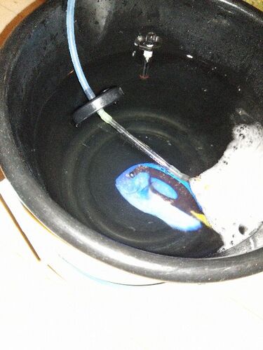 ナンヨウハギのサオリちゃん。 昨日から体中に白い模様が。 水を変えて様子見てました。 水が出来上がるまで、水を変えて様子を見ようとしてましたが、様子がおかしい。 もう白点病、リムフォ、ウーディニウムのどれかはわからないけど、餌の食べ方や動きの…